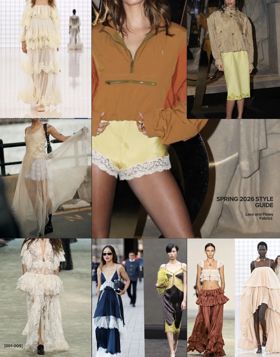 Lace and flowy fabrics are reclaiming center stage for Spring 2026 through a "soft power" aesthetic that balances romanticism with modern structure. This season, lace shed its "vintage-only" reputation, appearing in bold architectural silhouettes and high-contrast layering—think sheer lace trousers from Bailey Rose worn under oversized blazers or lace-trimmed satin slips from LoveShackFancy. Complementing this is a surge in "motion-heavy" fabrics like chiffon, silk, and lightweight linen, which define the season’s favorite boho-chic midi dresses and dramatic drop-waist gowns. By mixing these ethereal textures with "tougher" elements like utility jackets or chunky jewelry, the 2026 look achieves a refined, city-ready elegance that feels airy yet intentional.